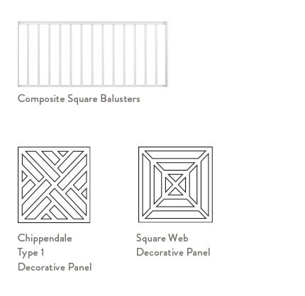 Choose from infill upgrades such as black aluminum balusters and decorative panels.